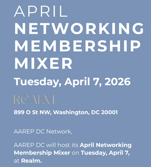 AAREP DC: Annual Meeting & Networking April 7 @ 5:00 pm - 8:00 pm Realm Rooftop 899 O St NW, Washington, DC, United States $60